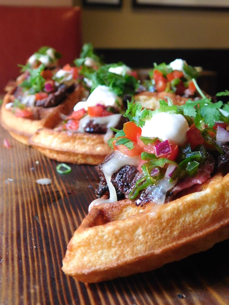 At The Mockingbird in Nashville, tater tots, lamb chili, beer cheddar, scallion, crema. “Our Tatchos are a great juxtaposition of nostalgia and comfort foods – who doesn't love tots, and who doesn’t love nachos?! The marriage is a natural and satiating combination of the two. W...